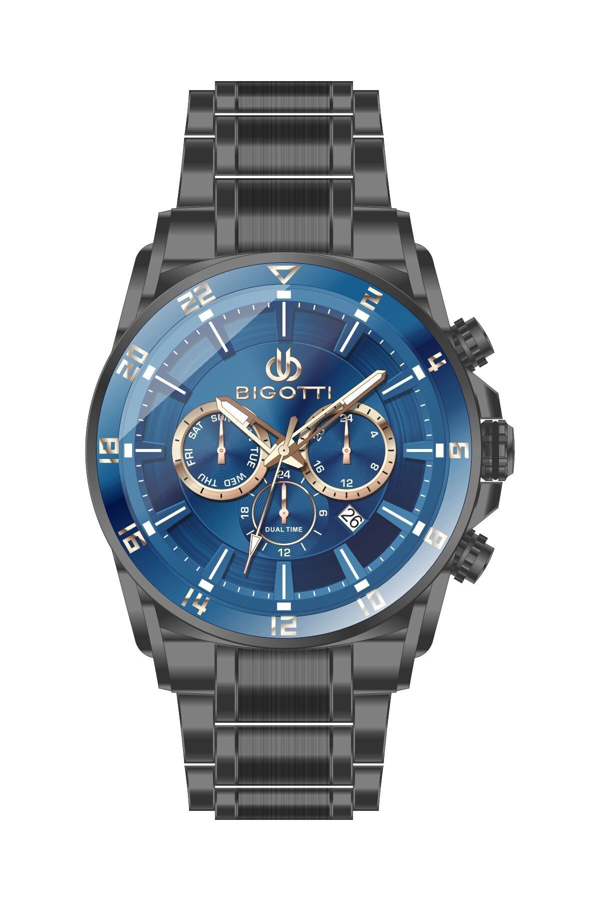 Bigotti Erkek Kol Saati - BG.1.10649-7 46MM Kasa Çapı, Metal Kordon, 5ATM Su Geçirmezlik, Mineral Cam, 2 Yıl Marka Garantili
