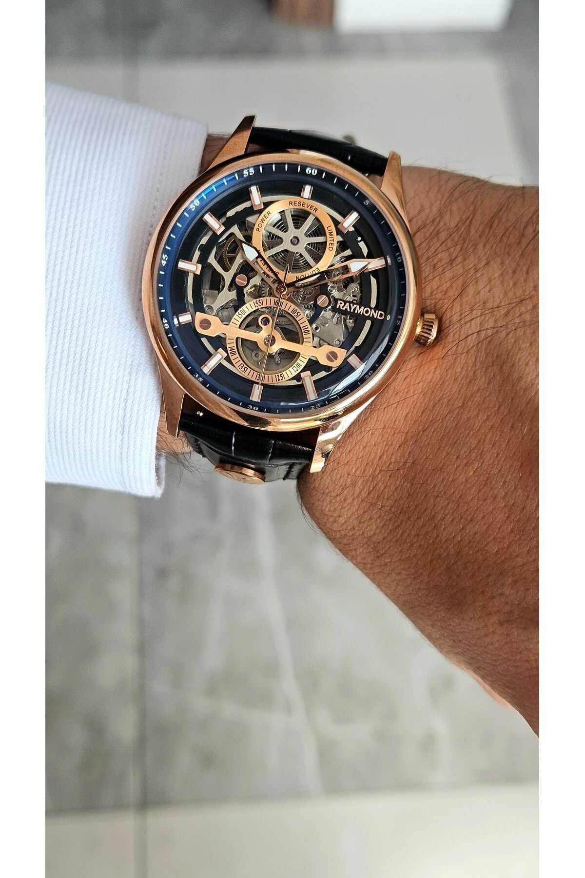Raymond kalitesini yansıtan bu özel tasarım Raymond Erkek Kol Saati RYM-280267-R150 Deri Kordon hem şıklığı hem de dayanıklılığı bir arada sunuyor. Günlük kullanımda veya özel davetlerde stilinizi tamamlayacak en ideal Erkek kol saati modelleri arasında yer alan bu parça, Essas Saat güvencesiyle kapınıza geliyor.