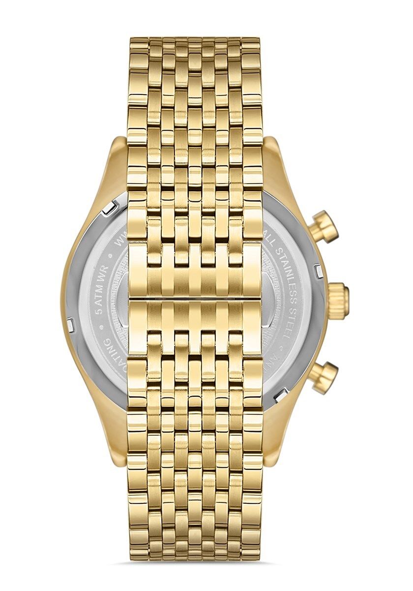 Hislon Erkek Kol Saati-MS101G-15SG Kasa Çapı: 44 mm | Çelik Kordon | Su Geçirmezlik: 5 ATM Kordon Rengi: Altın 2 Yıl Marka Garantili Orijinal Kol Saati