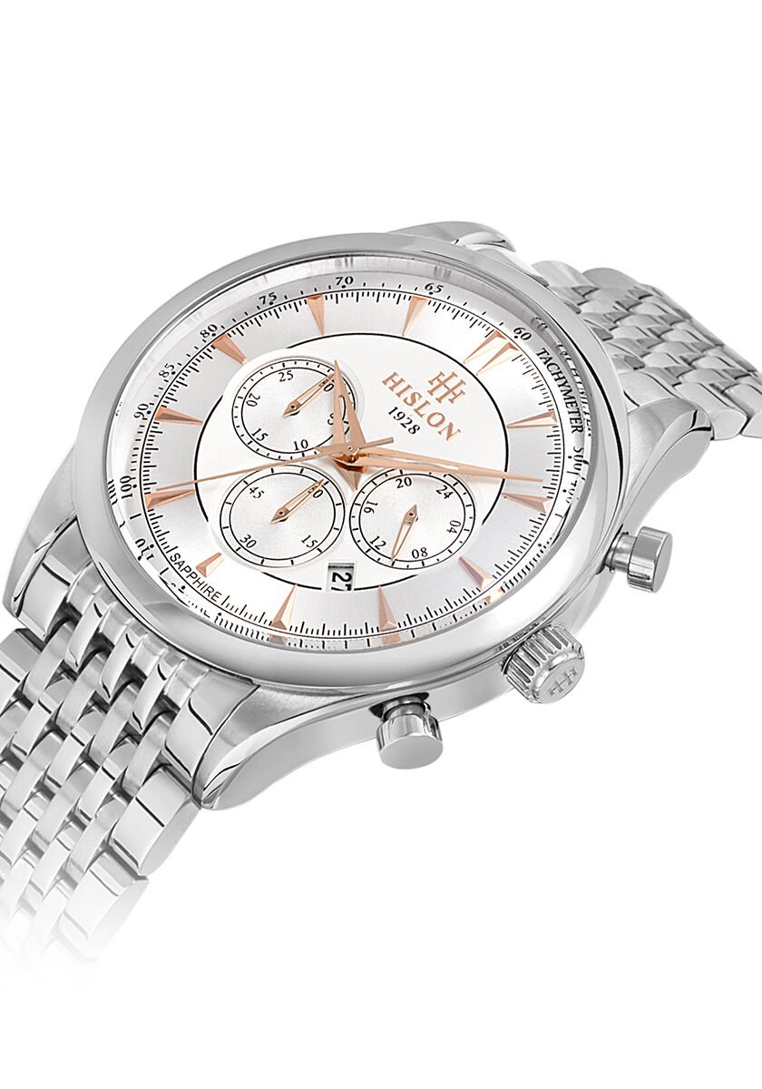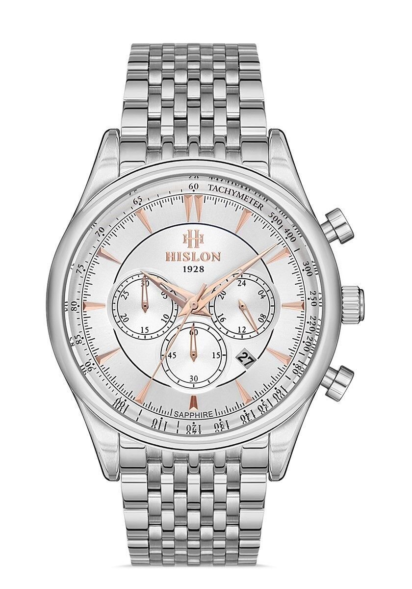 Hislon Erkek Kol Saati MS101S-02SR 2 Yıl Garantili, 44,5 mm Kasa Çapı, 316L Paslanmaz Çelik Kordon, Safir Kaplama Cam, 5 ATM Su Geçirmezlik