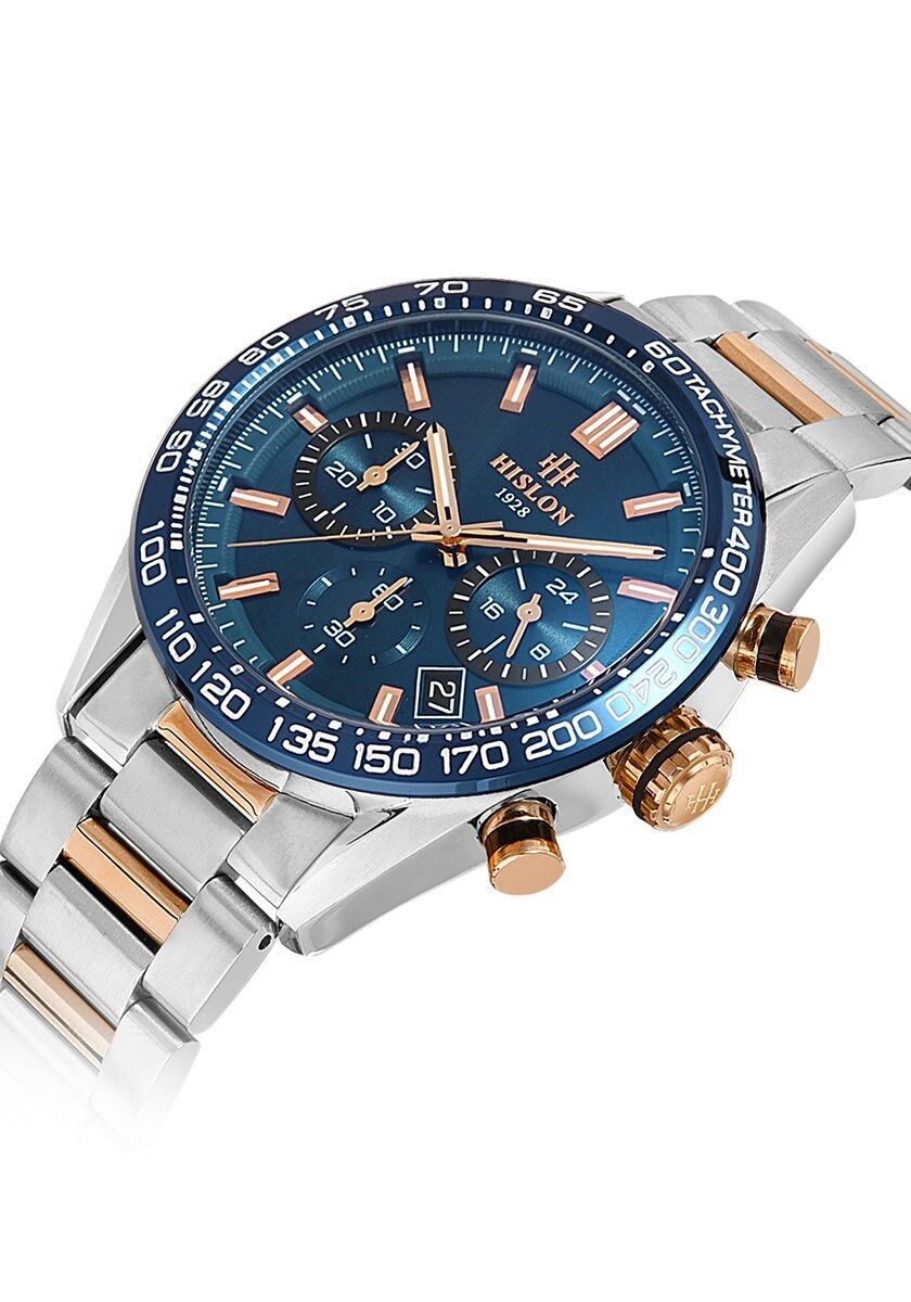 Hislon Erkek Kol Saati MS107T-11SR Orijinal | 2 Yıl Garantili| 44 mm Kasa Çapı, 316L Paslanmaz Çelik Kordon, 5 ATM Su Geçirmezlik, Safir Kaplama Cam