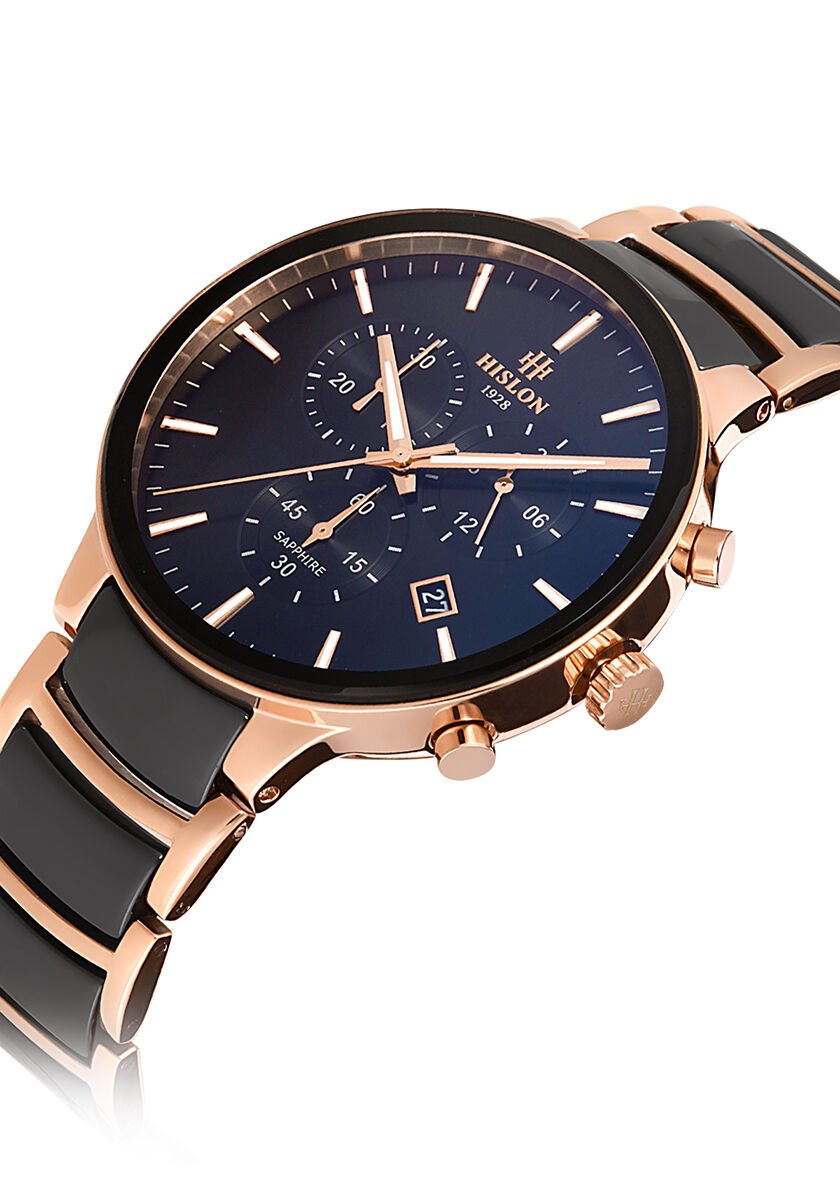 Hislon Erkek Kol Saati MS110T-04SR Orijinal | 2 Yıl Garantili| 42 mm Kasa Çapı, Çelik - Seramik Kordon, Safir Kaplama Cam, 5 ATM Su Geçirmezlik