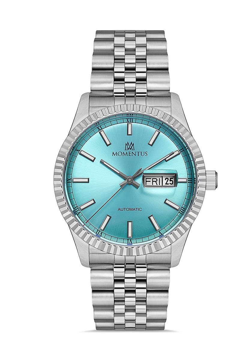 Momentus Men's Time Masters TM347S-10SS, Erkek Kol Saati Çalışma Şekli: Quartz, Makine Modeli: Japon Miyota 8205, Kasa Materyali: 316L Paslanmaz Çelik, Kasa Şekli: Yuvarlak, Kasa Çapı: 41 mm, Kasa Kalınlığı: 12.0 mm, Kasa Rengi: Çelik - Gold, Kadran Rengi: Turkuaz, Cam Cinsi: Mineral, Cam Şekli: Düz, Kordon Tipi: 316L Paslanmaz Çelik, Kordon Rengi: Çelik, Kordon Kilidi: Kilitli Klips, Kordon Genişliği: 22 mm, Su Geçirmezlik: 5 ATM, Çift Zaman Dilimi: Yok, Kronometre: Yok, 12/24 Göstergesi: Yok, Takvim: Tarih & Gün, Alarm: Yok