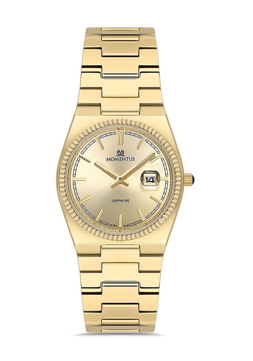 Momentus Women's Classystar CS346G-08SG, Kadın Kol Saati Çalışma Şekli: Quartz, Makine Modeli: Japon Miyota 9T15, Kasa Materyali: 316L Paslanmaz Çelik, Kasa Şekli: Yuvarlak, Kasa Çapı: 30 mm, Kasa Kalınlığı: 5.45 mm, Kasa Rengi: Gold, Kadran Rengi: Gold, Cam Cinsi: Safir, Cam Şekli: Düz, Kordon Tipi: 316L Paslanmaz Çelik, Kordon Rengi: Gold, Kordon Kilidi: Kelebek Klips, Kordon Genişliği: 20 mm, Su Geçirmezlik: 3 ATM, Çift Zaman Dilimi: Yok, Kronometre: Yok, 12/24 Göstergesi: Yok, Takvim: Yok, Alarm: Yok