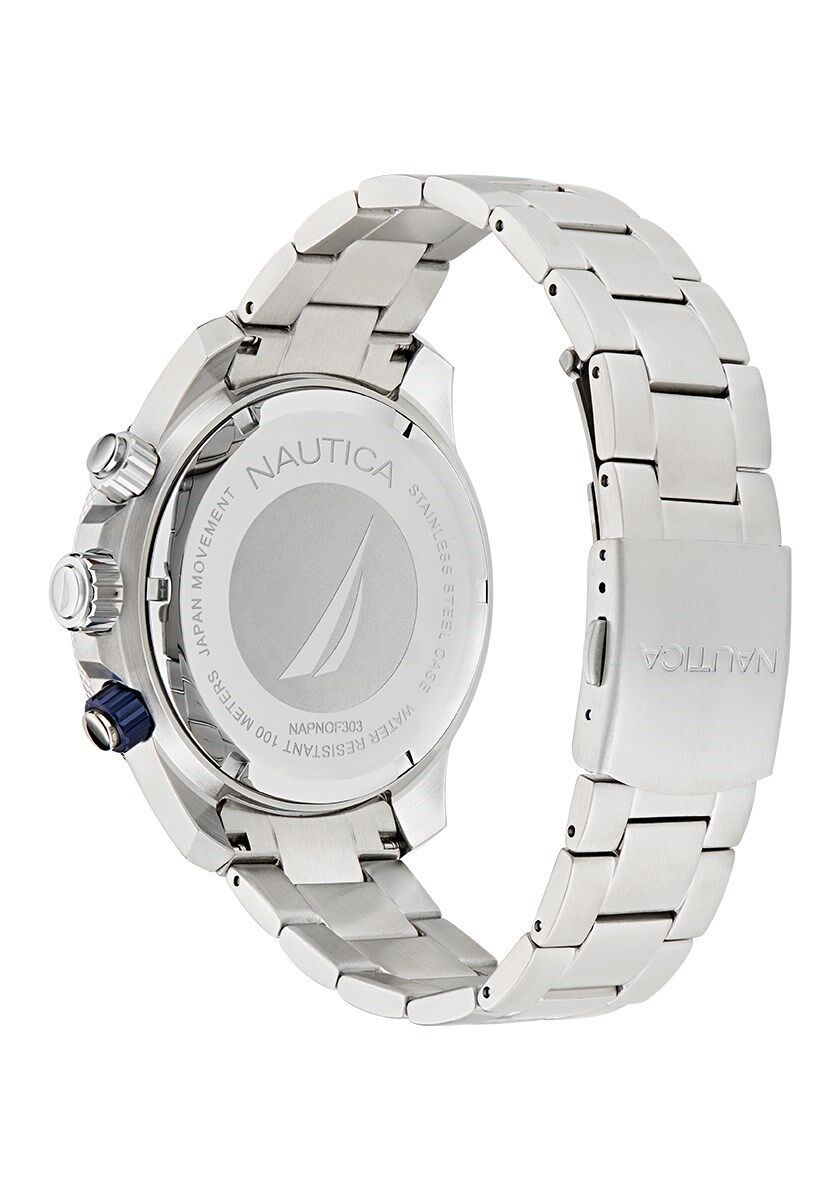Nautica Erkek Kol Saati-NAPNOF303 Kasa Çapı: 48 mm | Çelik Kordon | Su Geçirmezlik: 10 ATM Kordon Rengi: Gümüş 2 Yıl Marka Garantili Orijinal Kol Saati