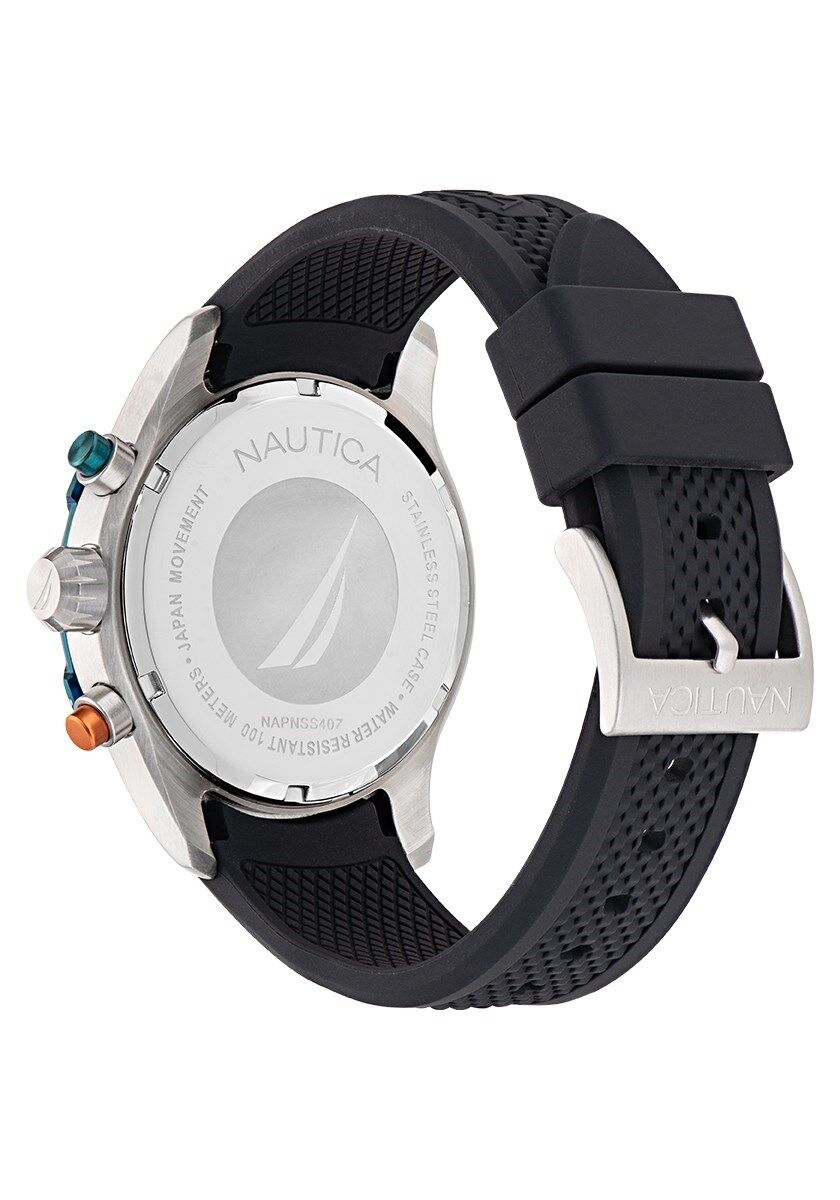 Nautica Erkek Kol Saati-NAPNSS407 Kasa Çapı: 46 mm | Silikon Kordon | Su Geçirmezlik: 10 ATM Kordon Rengi: Siyah 2 Yıl Marka Garantili Orijinal Kol Saati