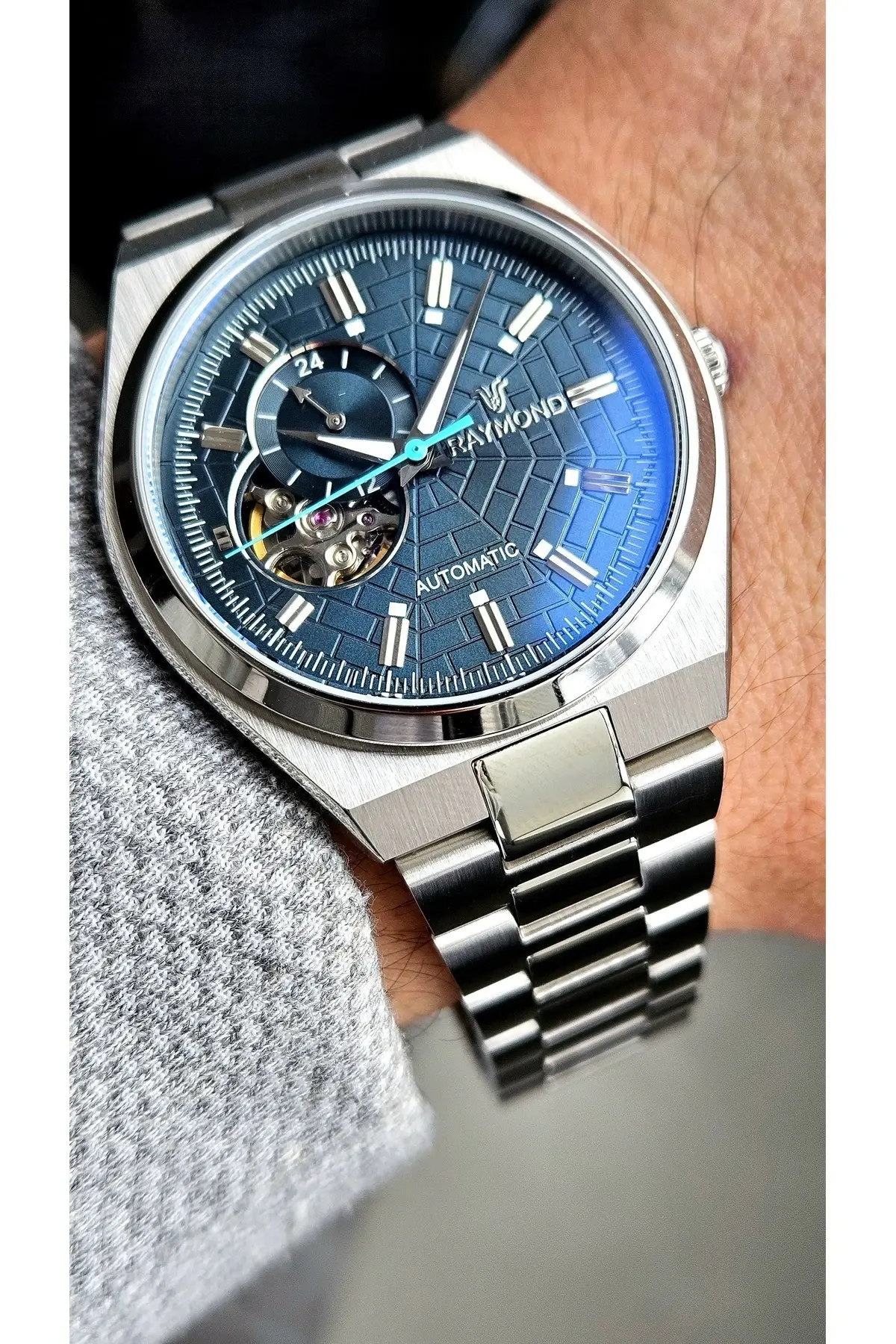 RYM-250424 RAYMOND ERKEK OTOMATİK SAAT - PASLANMAZ ÇELİK VE SAFİR CAM - 2 YIL GARANTİ