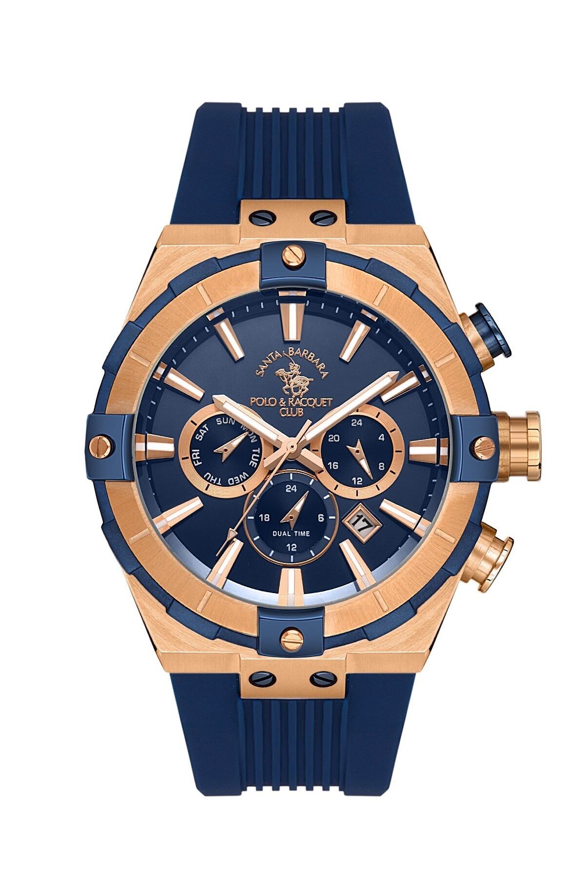 Santa Barbara Polo & Racquet Club Erkek Kol Saati - SB.1.10510.8 45MM Kasa Çapı, Silikon Kordon, 5ATM Su Geçirmezlik, Mineral Cam, 2 Yıl Marka Garantili
